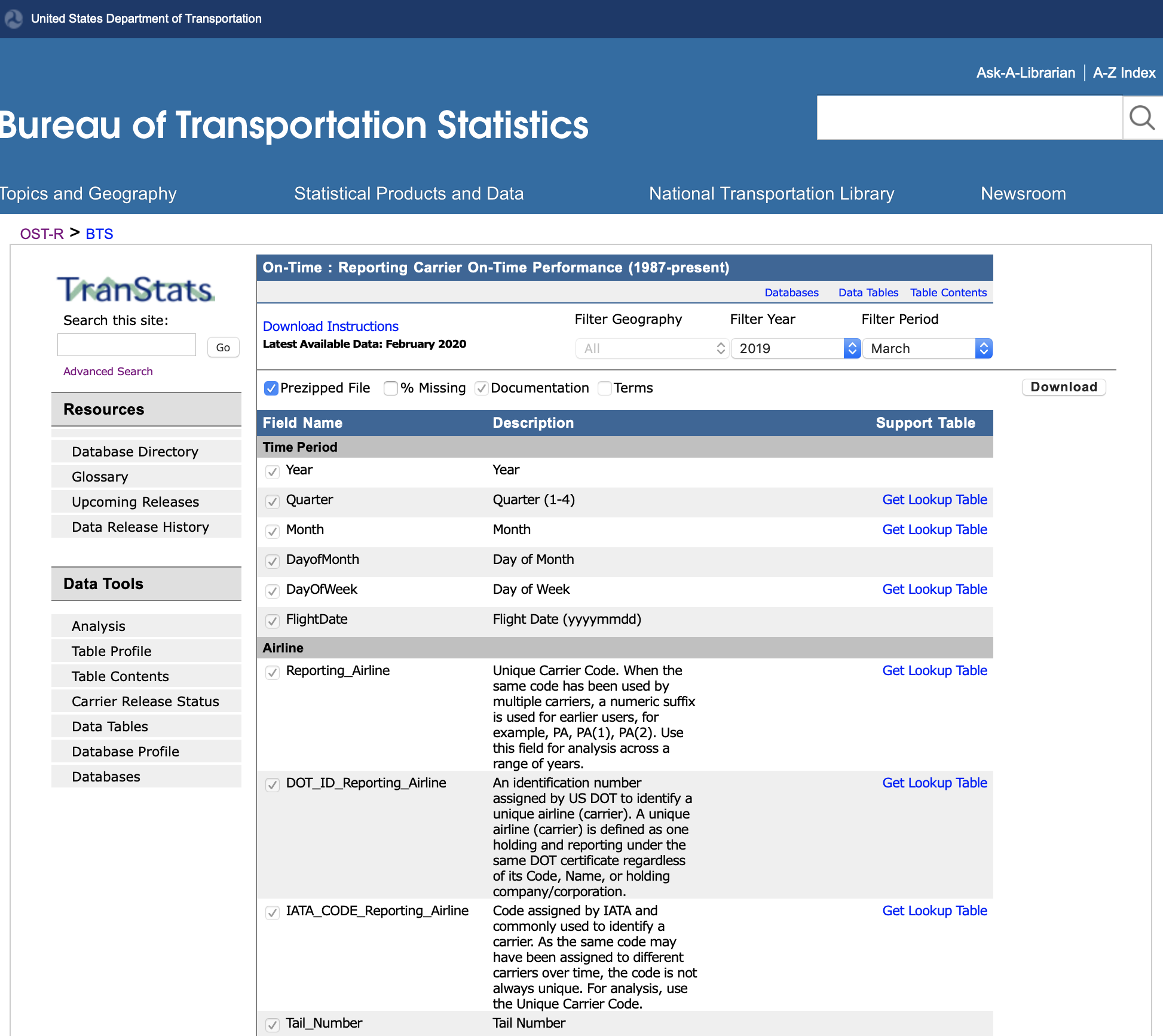 What is in it: Records of every commercial flight operated in the USA since the 1980s, that has carried passengers.